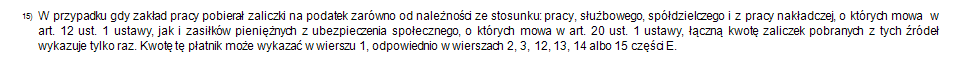 Bo mam Pana, który do maja miał umowę o pracę na pełen etat i potem od czerwca (po ukończeniu wieku emerytalnego na koniec maja) została zawarta nowa umowa o pracę, ale na mniejszy wymiar etatu - i u niego już mam osobno zaliczkę w poz. 33 i poz. 47.