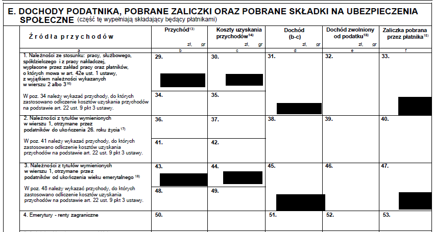 Natomiast w odpowiedziach wspomniałam również o innym pracowniku, który również ma przychód w poz. 29 i 43 (ale nie ma w poz. 66 oraz 90). I ten pracownik PAN ma zaliczkę w poz. 33 oraz 47. No i zapytała mi się Pani czy ten PAN ma inne źródła - odpisałam, że PAN nie ma ;)