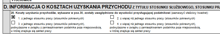 Pole to zazwyczaj zaznacza się, gdy nasz pracownik przy danych osobowych ma jednocześnie zaznaczoną opcję "umowa o pracę" oraz "umowa zlecenie", i dodatkowo przy urzędzie skarbowym na zakładce "podatek" mamy wskazane koszty uzyskania.