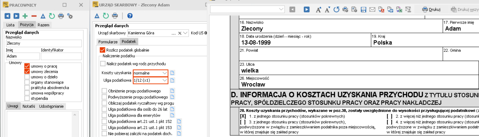 Zatem możemy albo odznaczyć umowę o pracę przy pracowniku i wyłączyć mu koszty uzyskania, albo wyłączyć same koszty uzyskania w urzędzie skarbowym, ten w przykładach poniżej.