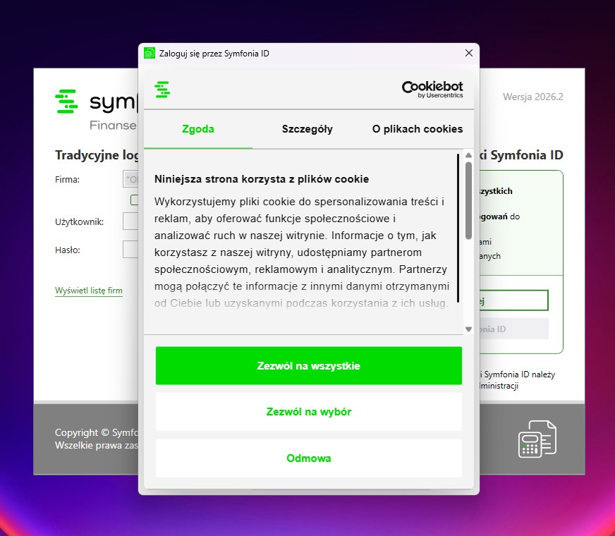 Podczas logowania do Symfonia ID non-stop okienko o plikach cookie