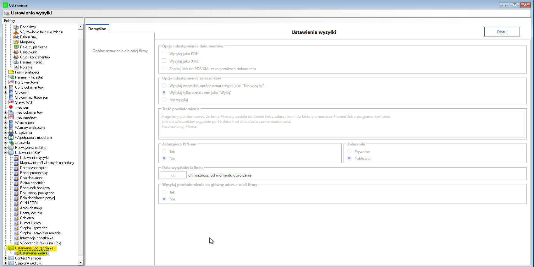 Proszę zobaczyć jakie tutaj macie ustawienia i tam spróbować odhaczyć [Opcje udostępniania dokumentów]. Rozumiem, że chodzi o wysyłkę faktury ksefowej również poza KSeF?